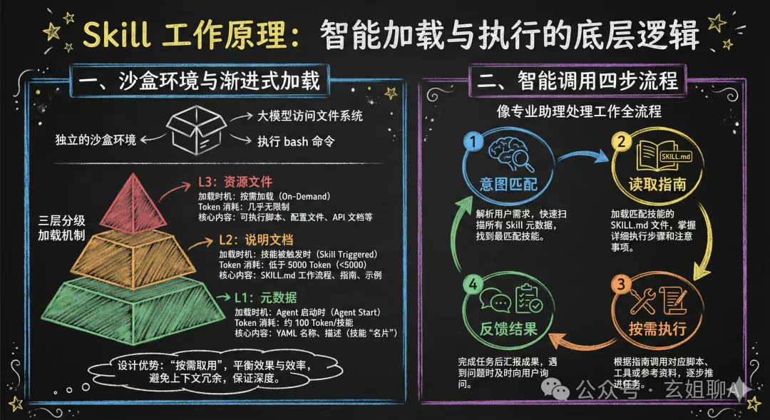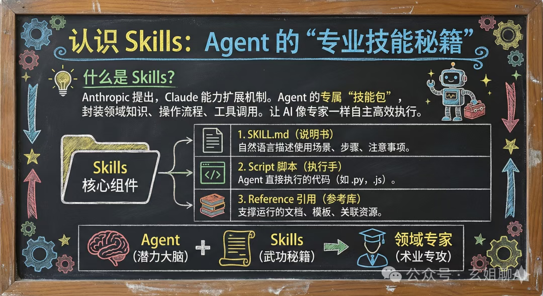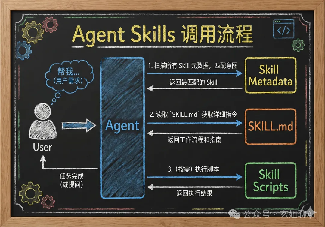 玄姐 的 Skills 全攻略:从概念到实操的完整手册 通过图清晰讲解了Agent Skills的概念、工作原理等,写本文主要是为了后续查看。