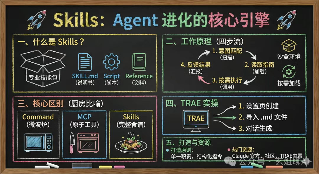 如果把 Agent 比作具备潜力的大脑,Skills 就像是一套套可复用的 "武功秘籍",让 Agent 从 "样样略懂" 的通才,升级为 "术业专攻" 的专家。