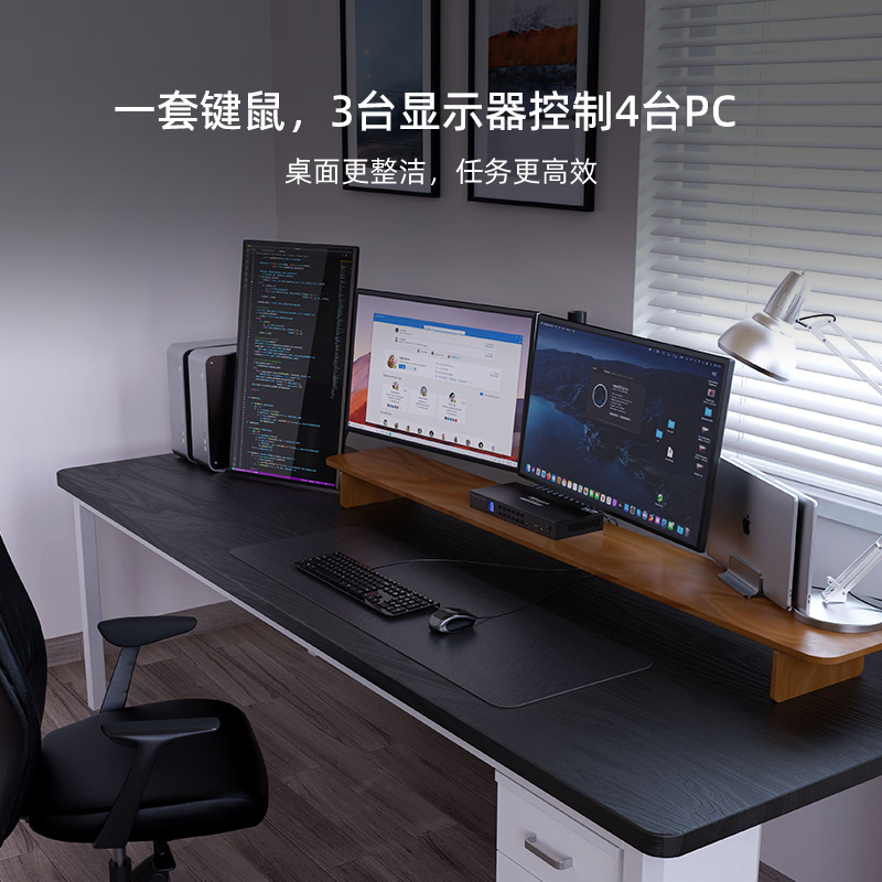 KVM显示器的主要优势在于其便携性和一体化设计。它们特别适合个人办公室或小型工作环境,尤其是需要频繁切换设备的场景。用户可以轻松地将KVM显示器在不同设备之间移动,提供了极高的便利性和灵活性。