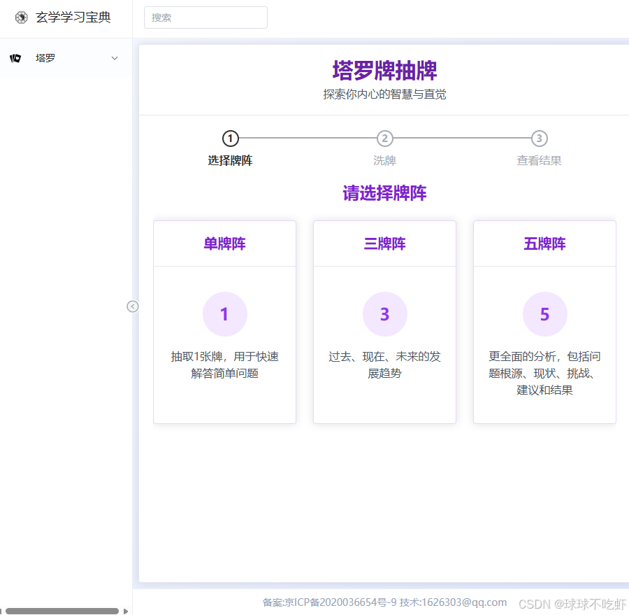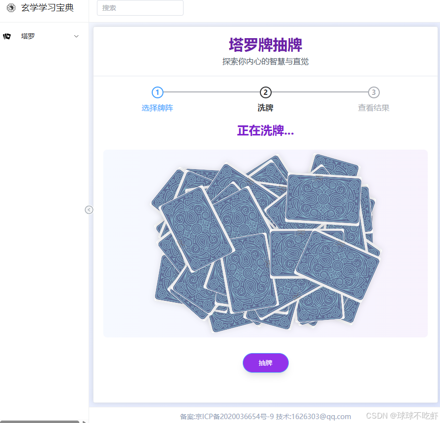 在本文中,我将分享如何使用Vue 3、Vite、Element Plus等现代前端技术栈,构建一个功能完整、用户体验良好的塔罗牌抽牌应用。通过这个项目,我们可以学习到组件化开发、状态管理、动画效果实现以及响应式设计等前端开发核心技能。