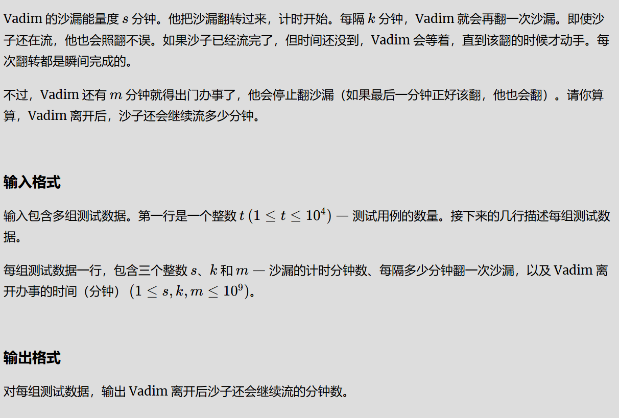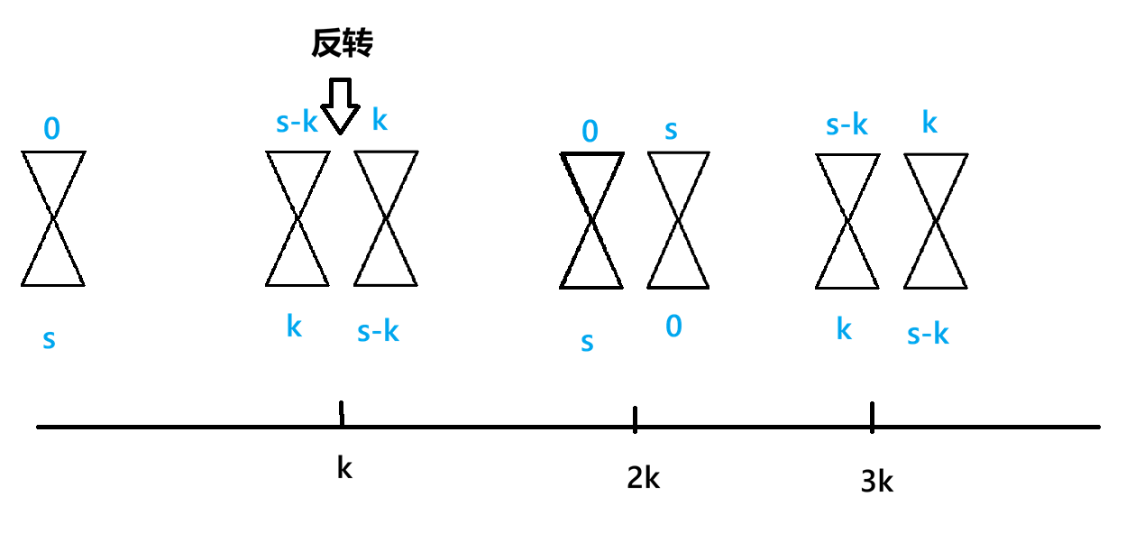 - s < k s< k s<k,如下图,翻转奇数次最后流k分钟,反转偶数次最后流s分钟