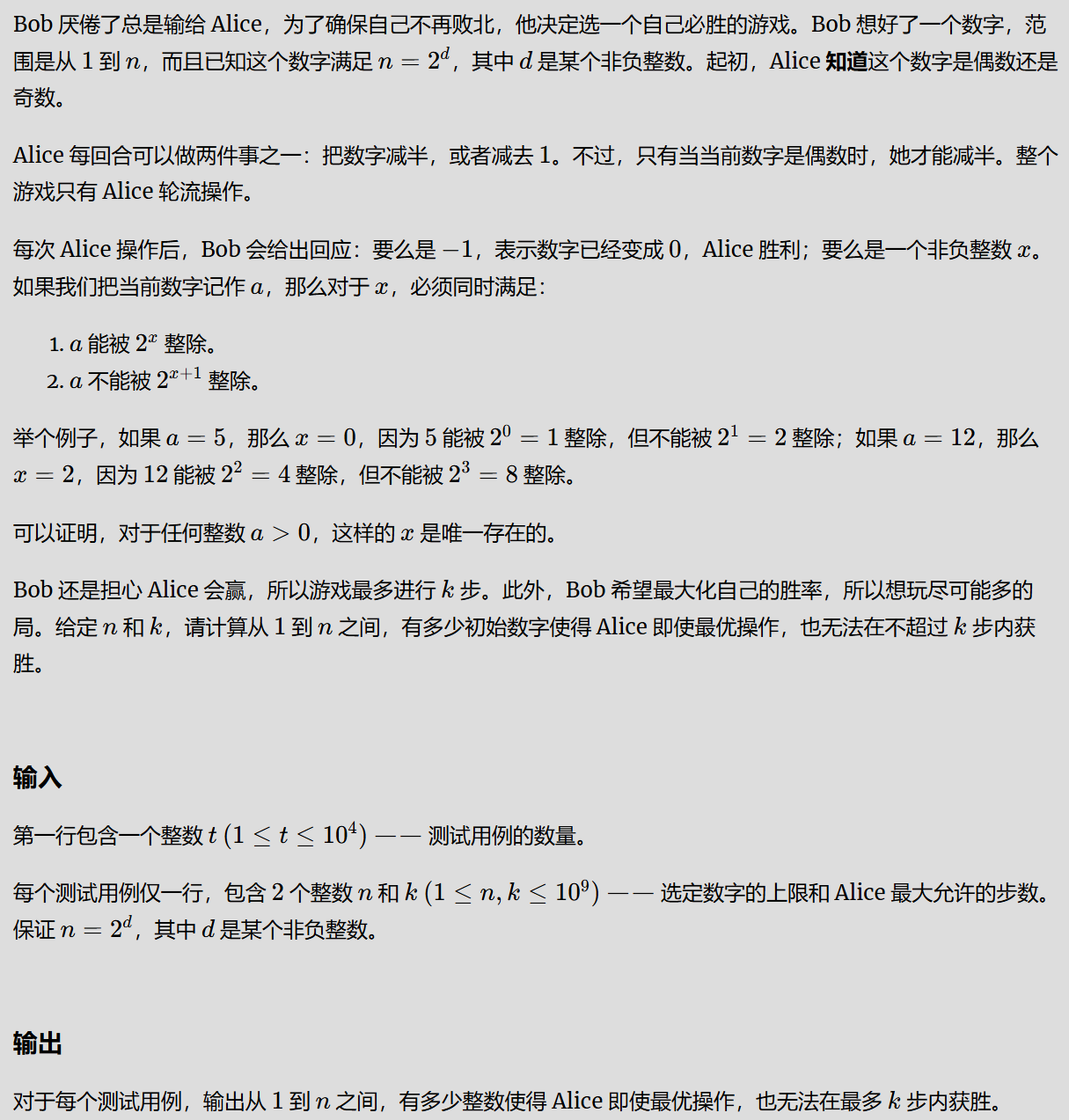 注意题设 n = 2 d n=2^d n=2d,1的位置可以向低位任意分配而不会超过 n n n