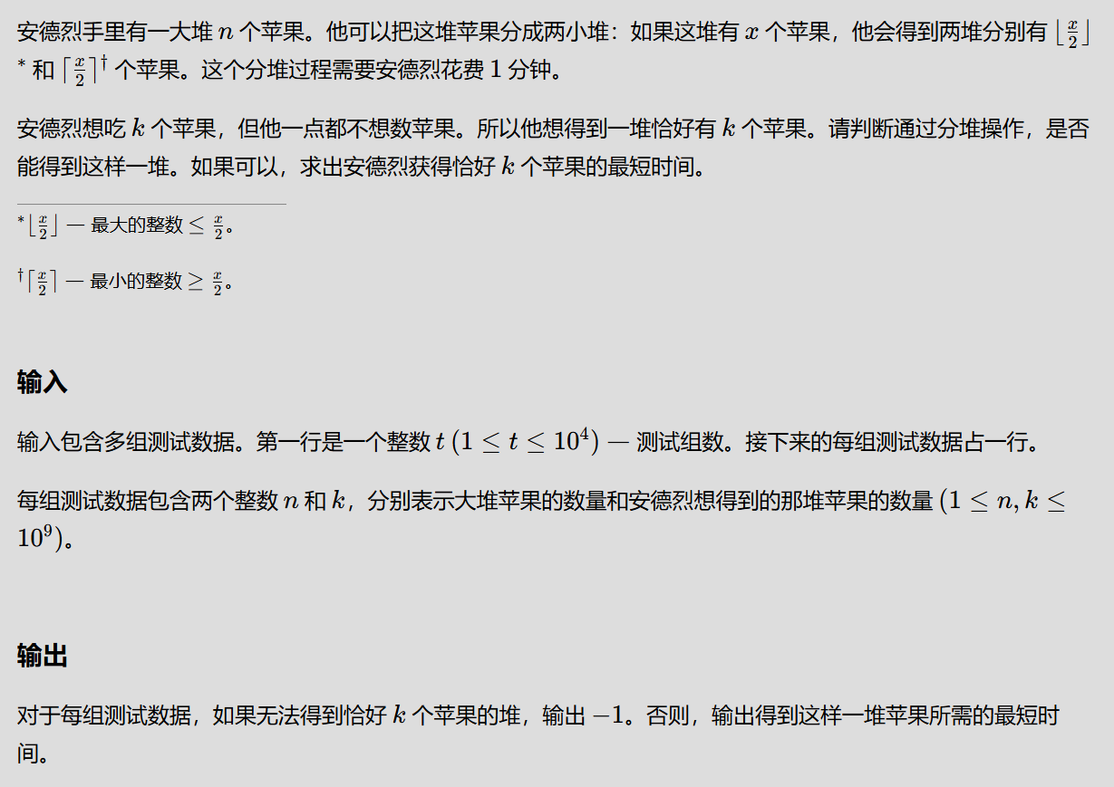 把一个二进制数通过题中操作变成0,需要把高位减半放到低位,低位-1去掉各数位上的1