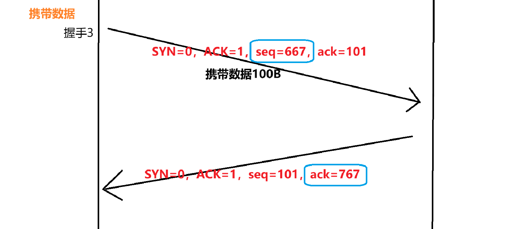 - 握手3可携带数据也可不携带数据,如果不携带数据,则不消耗序号。