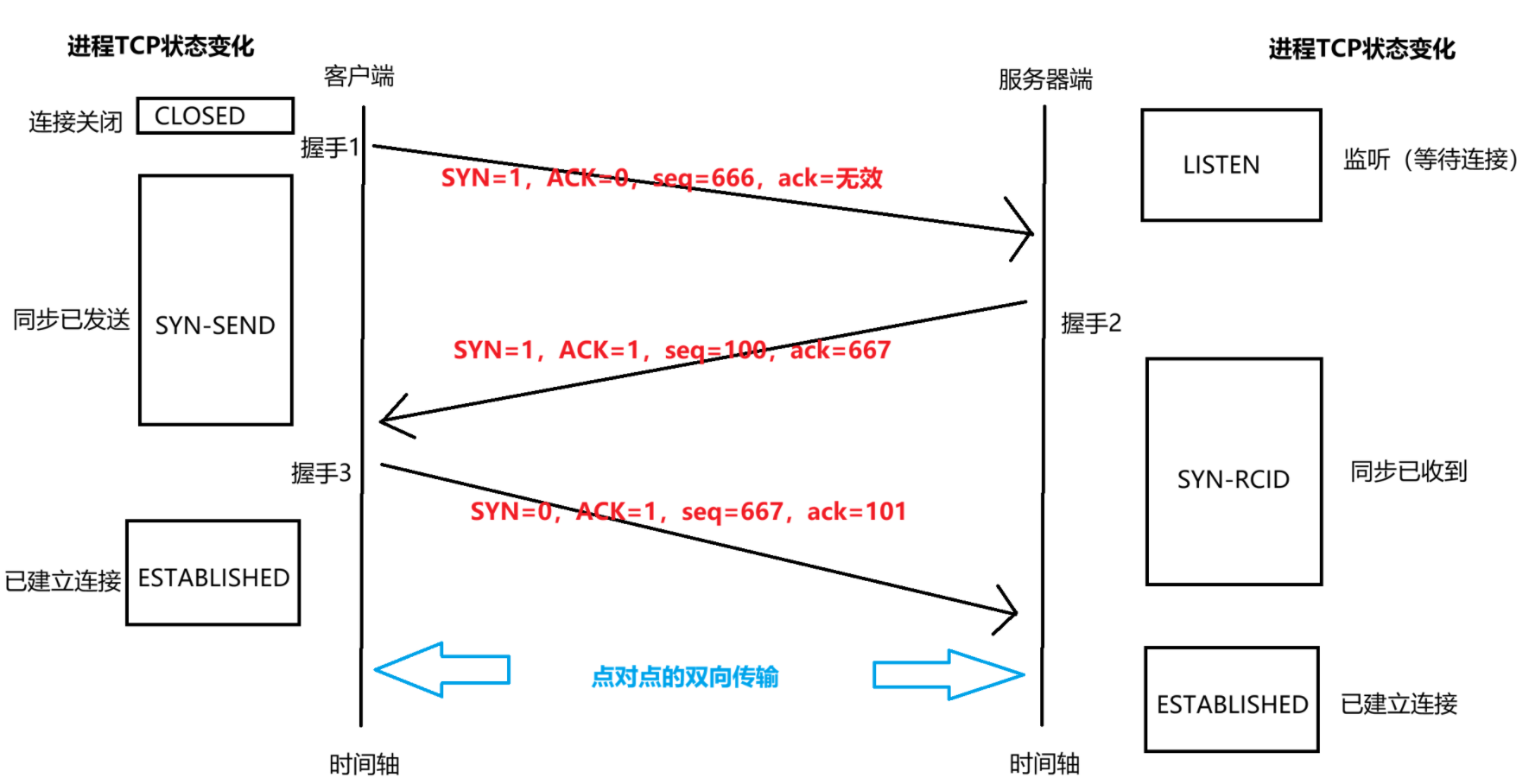 - TCP全过程中,只有握手1的ACK=1表示确认后无效,因为在此连接建立之前都不存在属于此连接的通信;