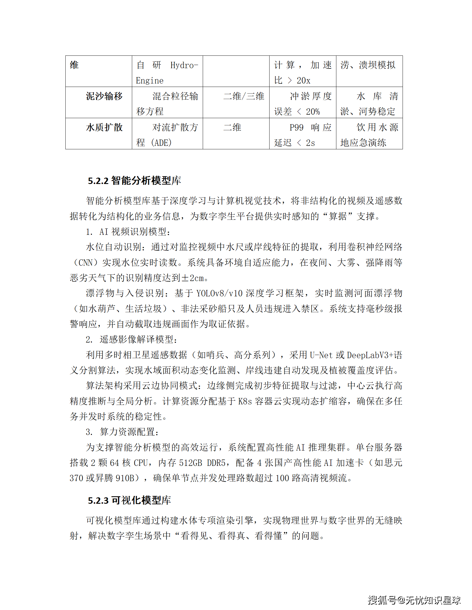 - 智能分析模型库 :赋予系统"慧眼"。AI视频识别 :利用YOLO等深度学习框架,自动识别水位、漂浮物、非法入侵等,恶劣天气下水位识别精度达±2cm。遥感影像解译:通过U-Net等算法,自动监测水域变化、岸线违建,实现大范围、高频次的动态监管。