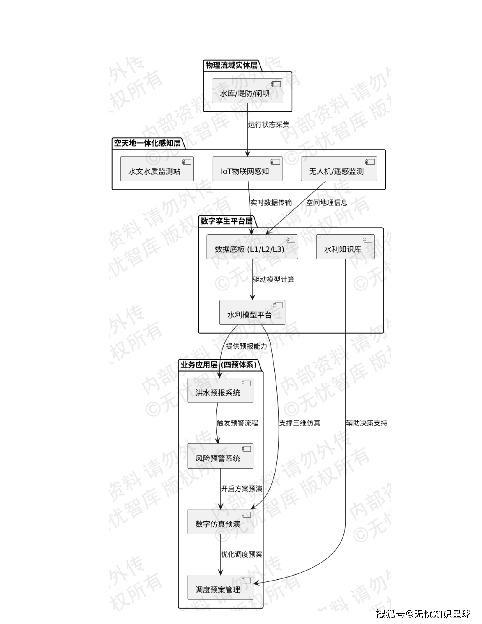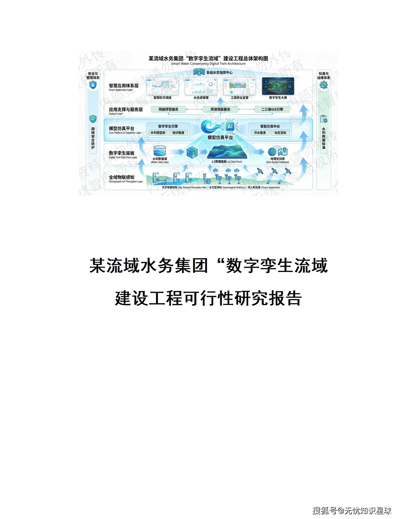 针对上述痛点,报告提出了清晰、系统的解决方案------构建"一底座、一平台、N应用"的数字孪生流域体系。