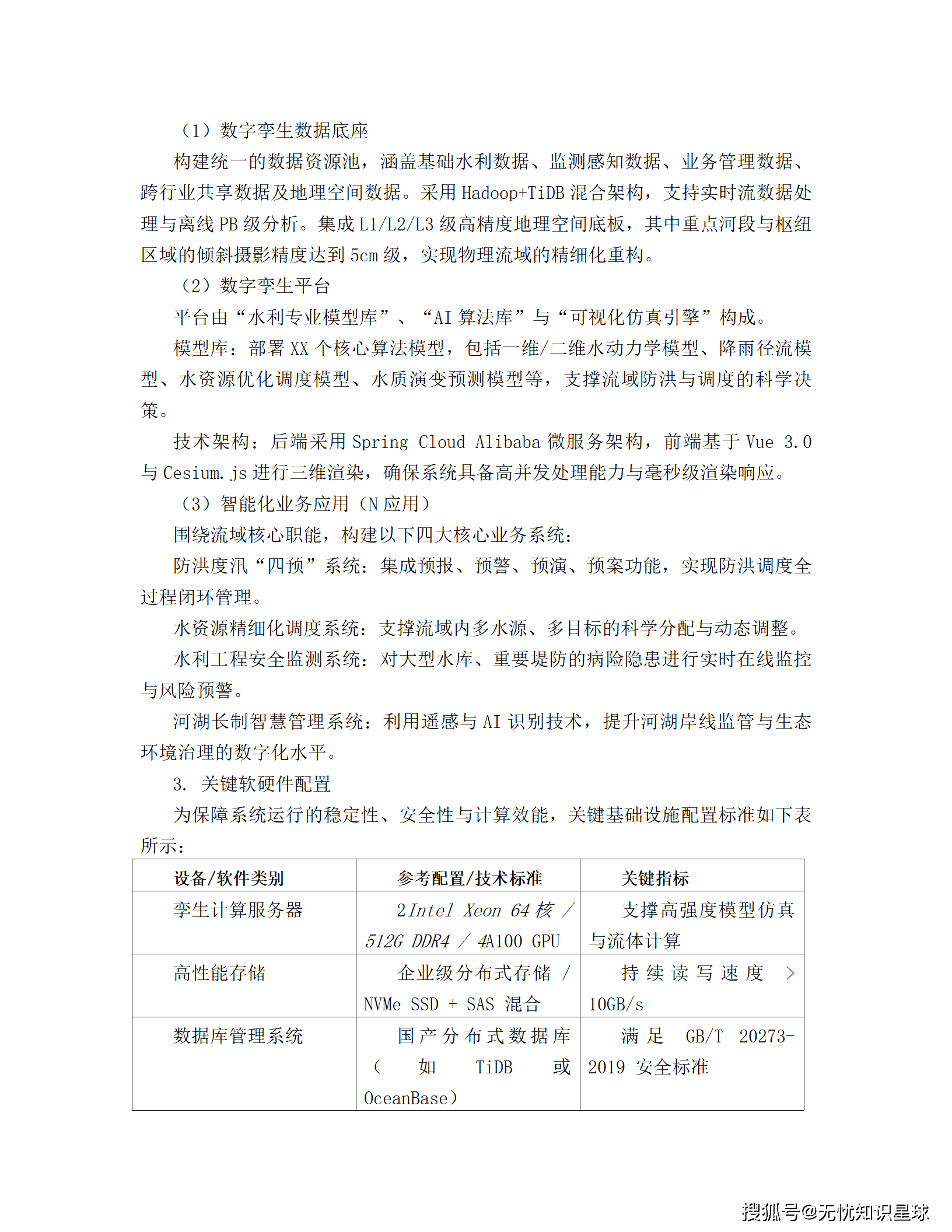 - 计算与存储 :算力 :高性能计算集群(Intel Xeon 64核 + NVIDIA A100 GPU)存储:分布式存储系统,初始容量500TB,持续读写速度 > 10GB/s