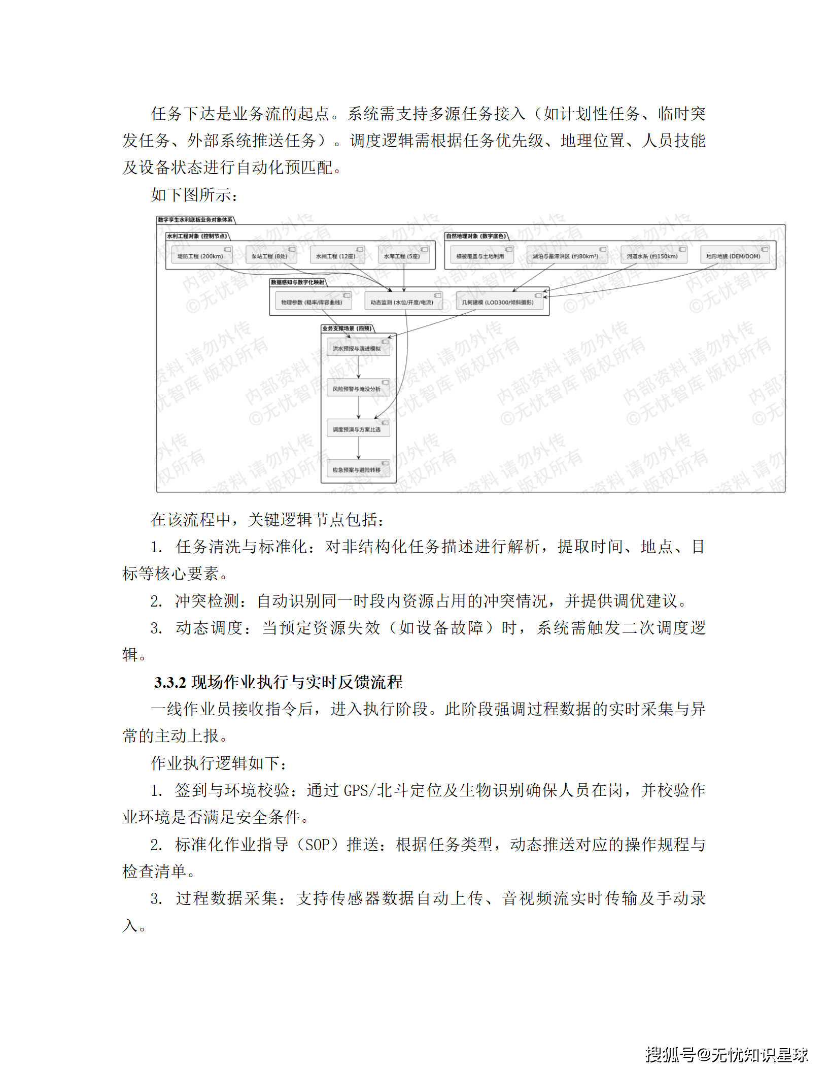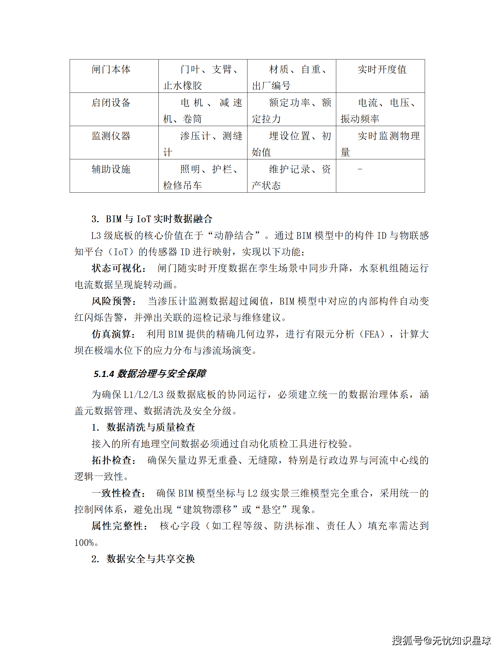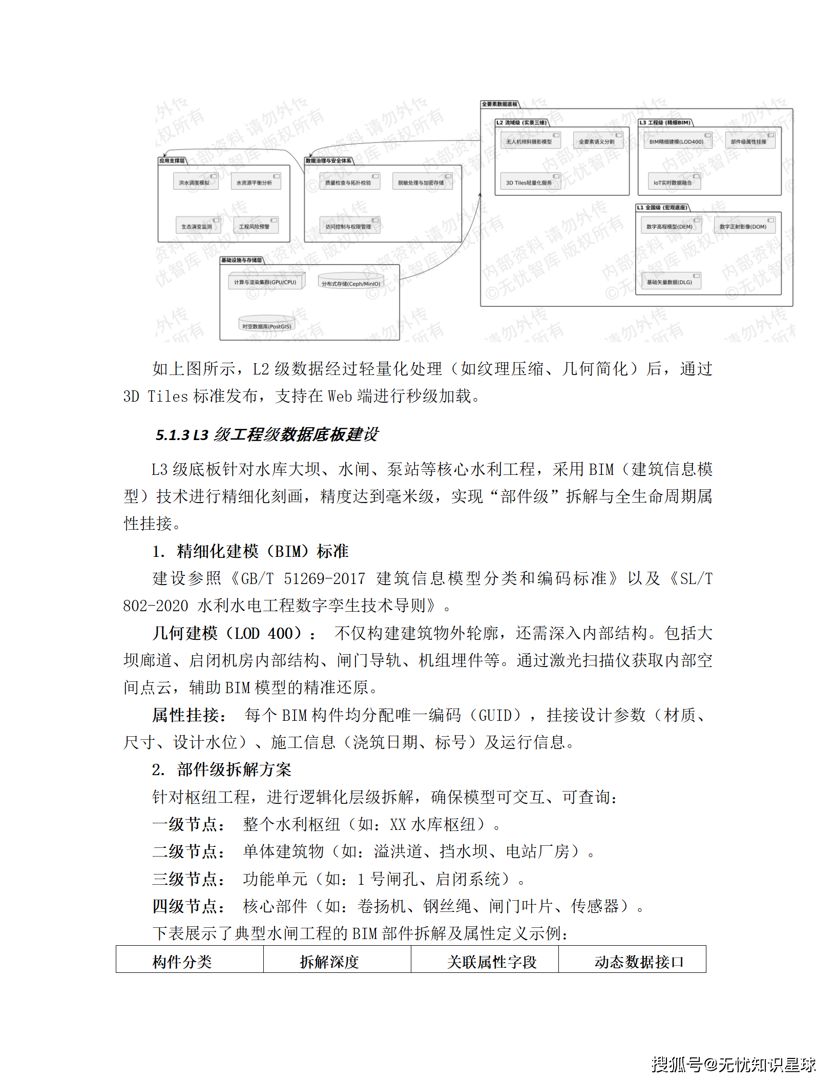 - L3级(工程级):实现部件级精细刻画。对水库、水闸等核心工程,采用BIM技术进行毫米级建模,拆解到螺栓、传感器级别,并挂接设计、施工、运维全生命周期属性。