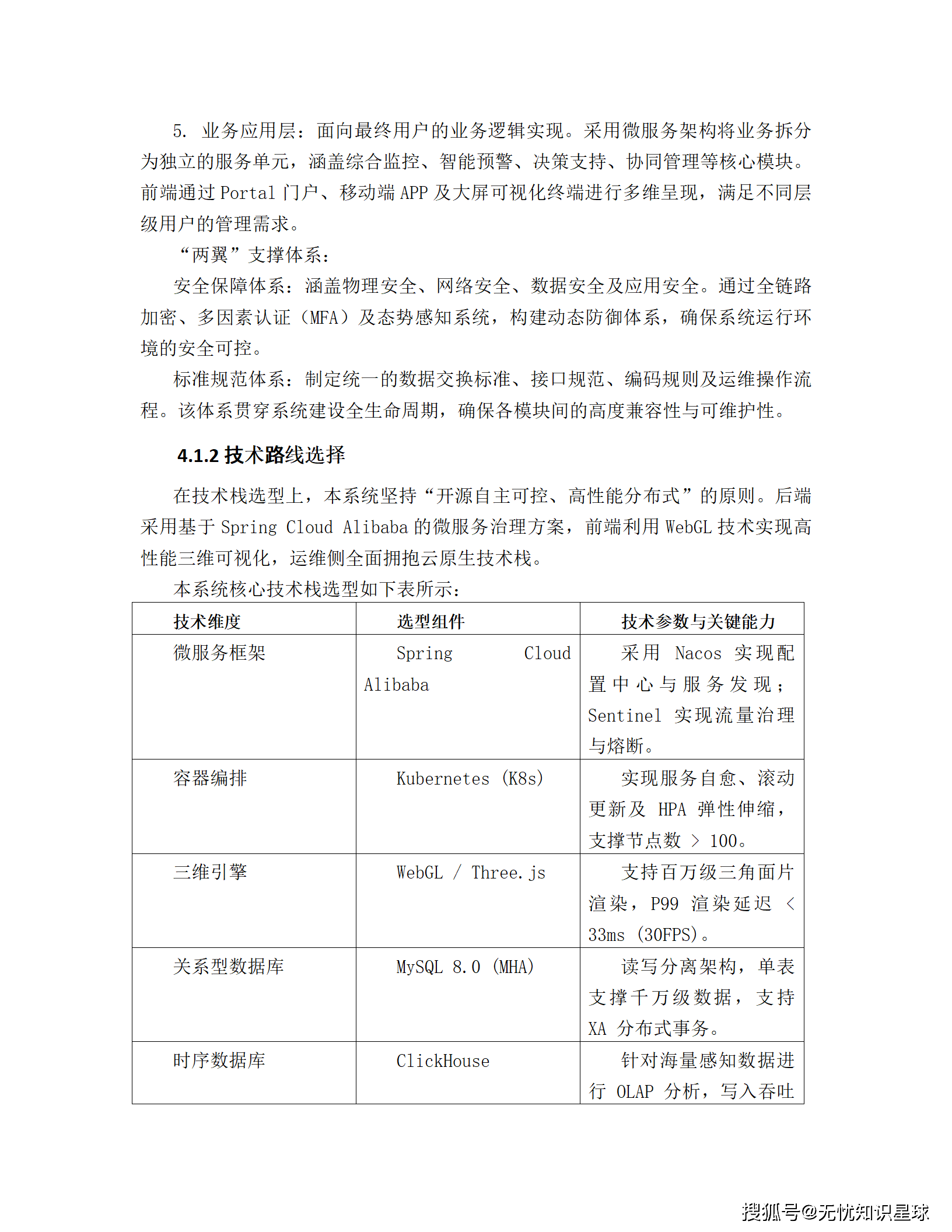 为支撑如此庞大复杂的系统,报告在技术选型上坚持"自主可控、高性能、高可用"的原则。