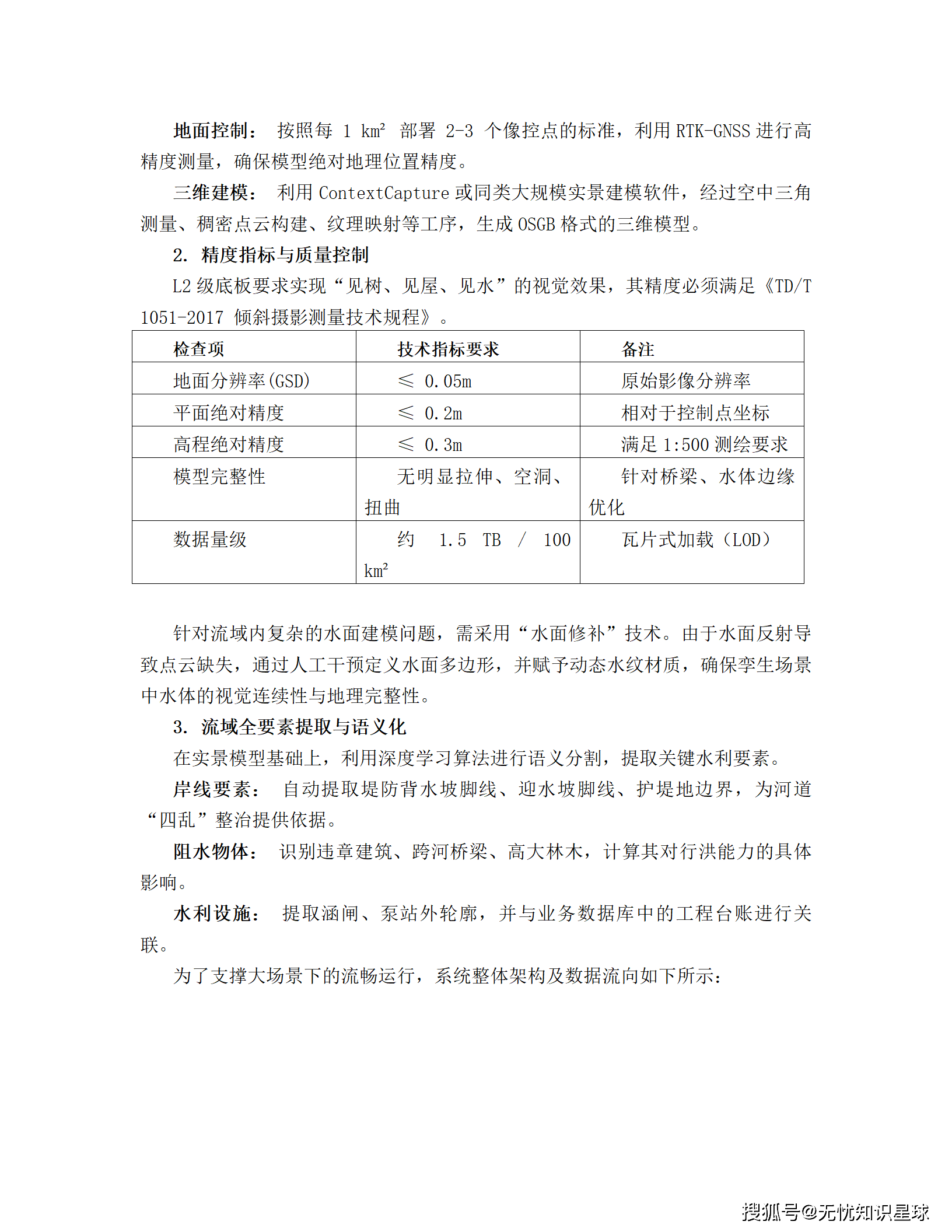 - L2级(流域级):构建实景三维模型。利用无人机倾斜摄影,获取优于5cm精度的实景模型,覆盖500平方公里重点区域,实现"见树、见屋、见水"的视觉效果,并通过AI自动提取岸线、阻水物等关键要素。