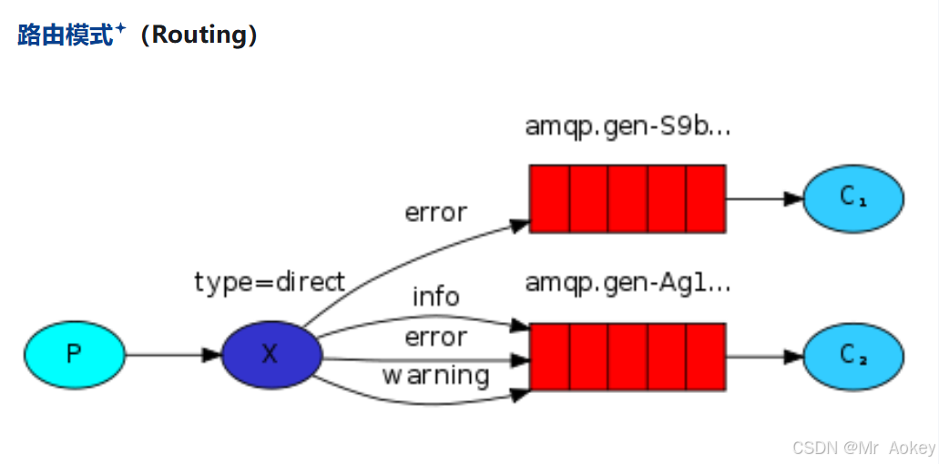 RoutingKey 是消息队列中用于将消息路由到特定队列的键,生产者发送特定消息时指定RoutingKey,交换机根据 RoutingKey 和 绑定规则 决定将消息投递到哪些队列.