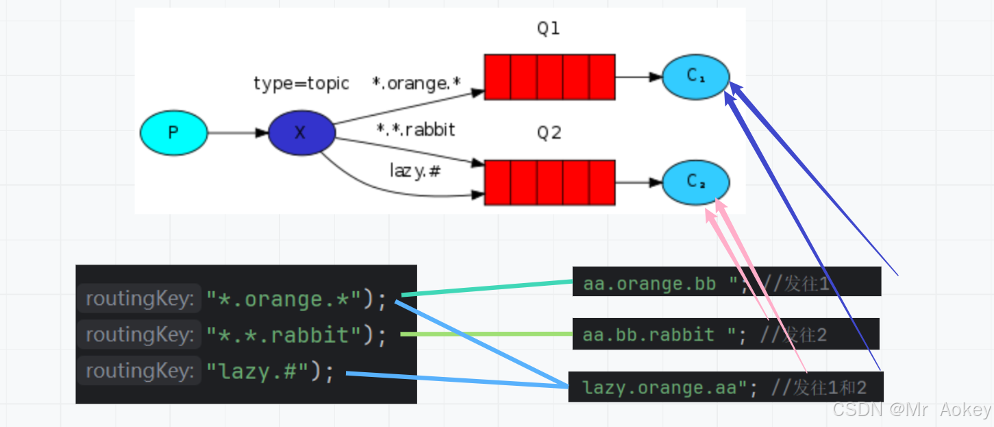 在讲解主题模式之前。我们要先了解Routingkey和BindingKey