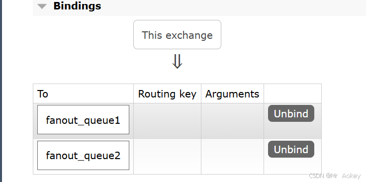 //交换机和队列绑定,routingKey为空表示交换机收到任何消息都会直接发送到队列中