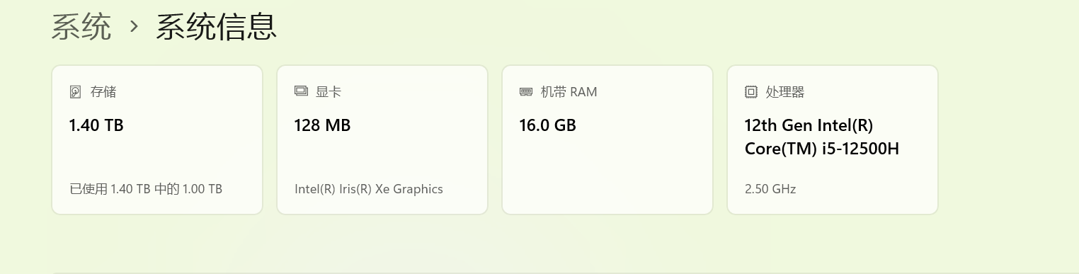 | CPU(处理器) | 中央处理器,是电脑的运算和控制核心,负责执行操作系统、应用程序的指令,处理数据计算。 | 电脑的 "大脑",决定了电脑运行程序、处理任务的快慢。 | 12th Gen Intel (R) Core (TM) i5-12500H(如你图中所示)、AMD Ryzen 7 7800X3D |