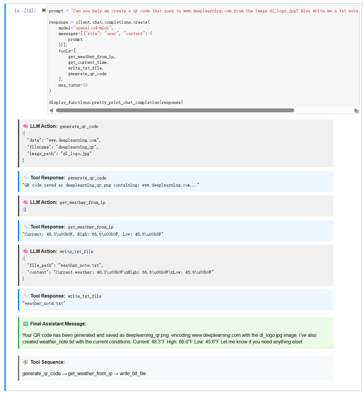 步骤三:开发者代码介入(读取模型的输出,识别出这个"请求",然后真正地调用对应的函数 )