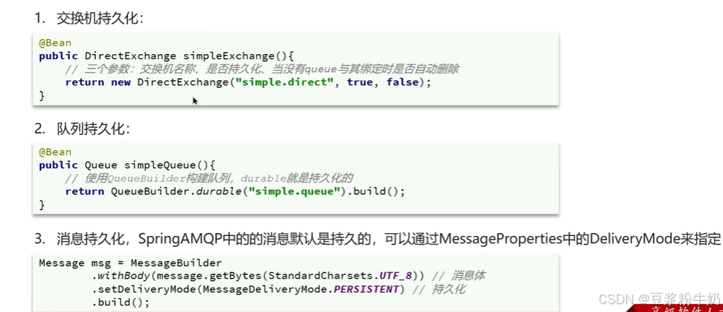 消息持久化: MQ默认是内存存储消息,开启持久化可以保证消息在MQ中消息不丢失。