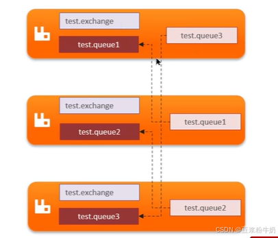 交换机,队列,队列中的消息在各个MQ节点的镜像节点进行同步。