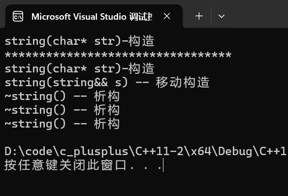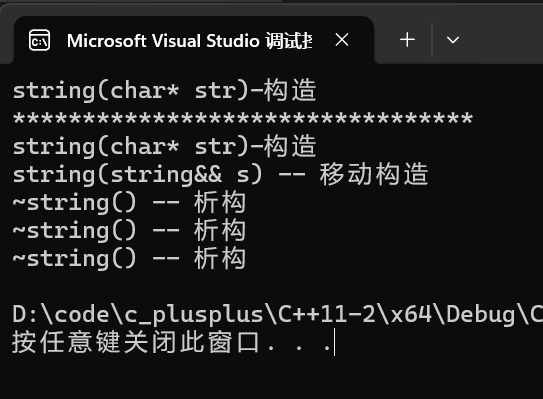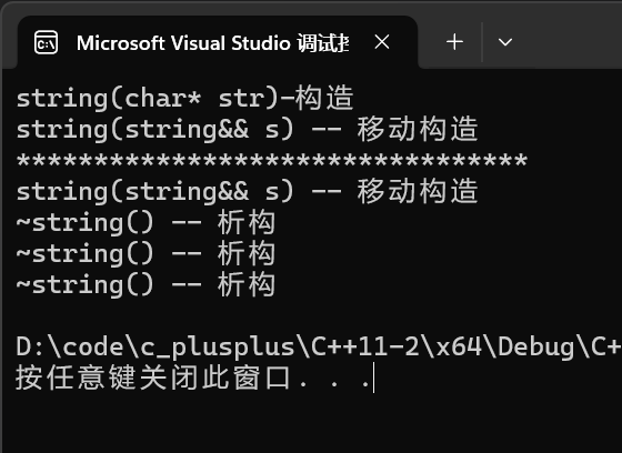 cout << "string& operator=(string&& s) -- 移动赋值" << endl;