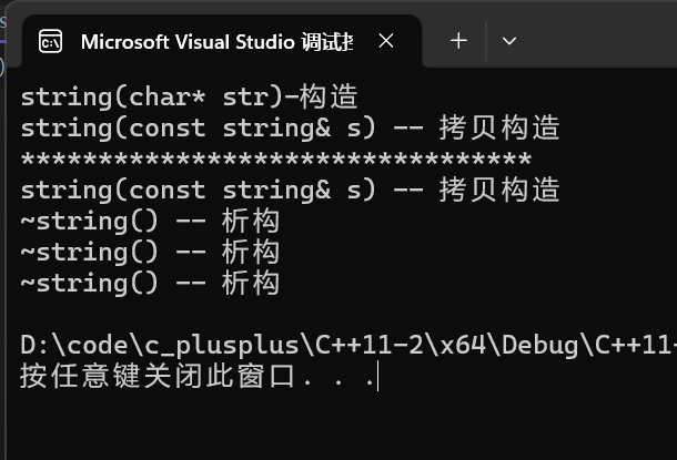 cout << "string(const string& s) -- 拷贝构造" << endl;