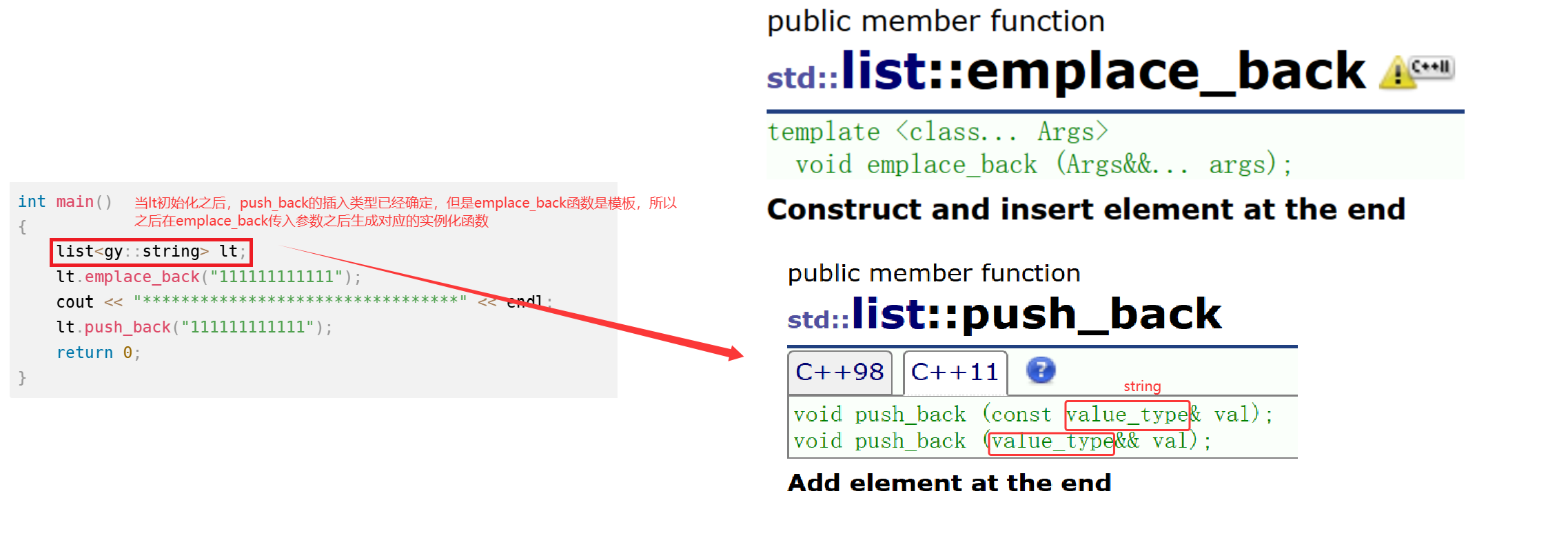 template <class... Args> void emplace_back (Args&&... args);template <class... Args> iterator emplace (const_iterator position, Args&&... args);- C++11以后STL容器新增了empalce系列的接口,empalce系列的接口均为模板可变参数,功能上兼容push和insert系列,但是empalce还支持新玩法,假设容器为container< T>,empalce还支持直接插入构造T对象的参数,这样有些场景会更高效一些,可以直接在容器空间上构造T对象
