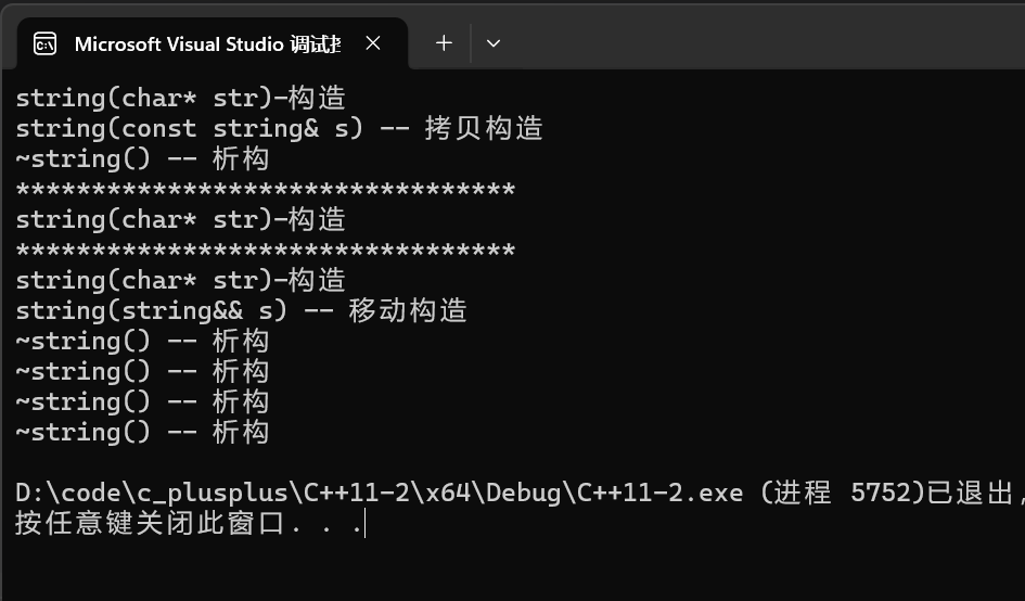 - 使用我们自己实现的string类,使用emplace验证emplace_back的高效性