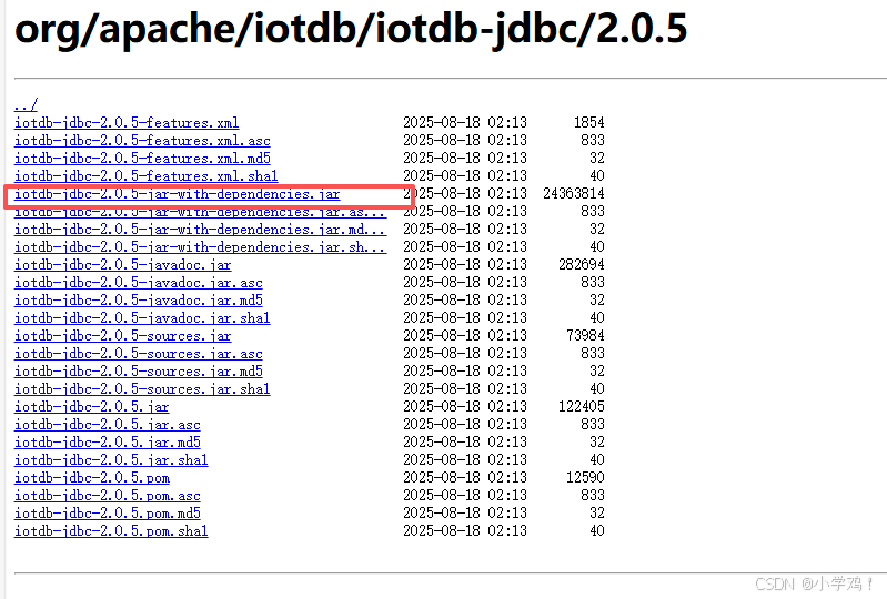 我自己安装 IoTDB 的版本是V2.0.5,所以下载 iotdb-jdbc-2.0.5-jar-with-dependencies.jar