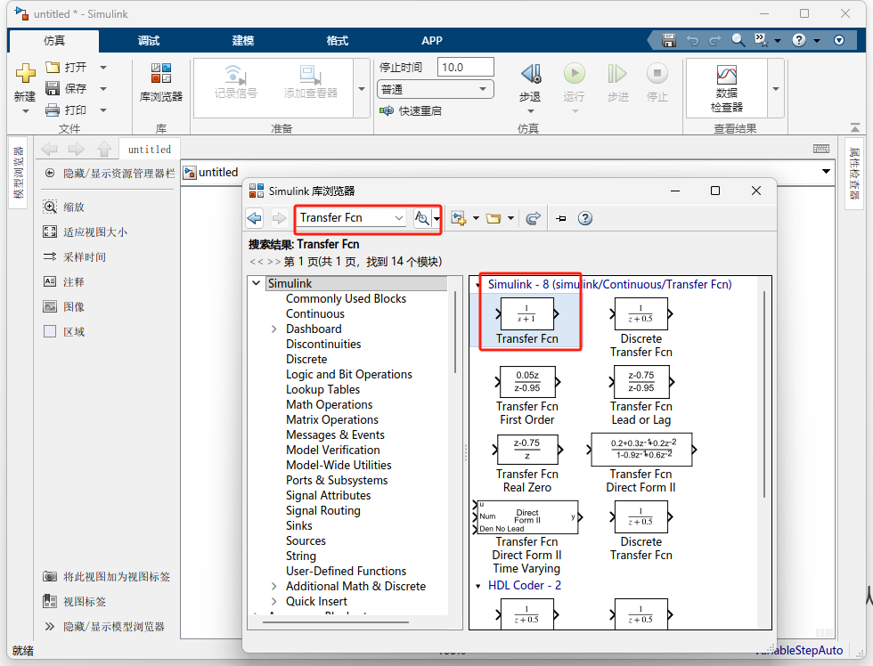 Transfer Fcn,拖入画布。