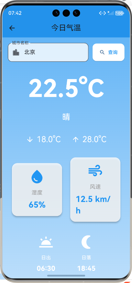 每日天气APP是一款提供实时天气信息查询的移动应用,主要功能包括: