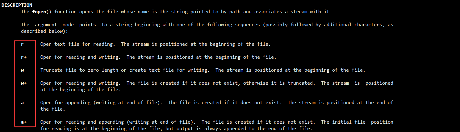 fopen 打开文件,失败返回 NULL,成功返回指向 FILE 结构体的指针(通过该指针操作文件);我们在这里仅研究 w(写)、a(追加写)两种打开方式。