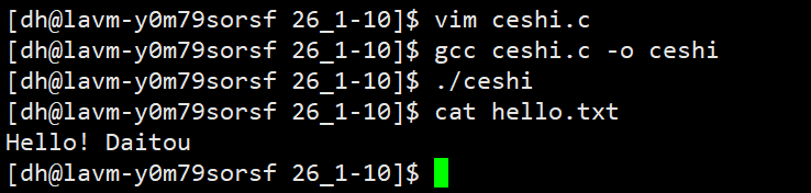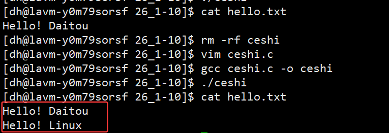 <font style="color:rgb(85, 86, 102);background-color:rgb(238, 240, 244);">w</font>方式fopen打开文件时,写入前会先清空文件原有内容,后续通过fwrite写入的内容会从头覆盖,因此最终文件中仅保留新写入的内容(如仅显示"Hello! Daitou")。