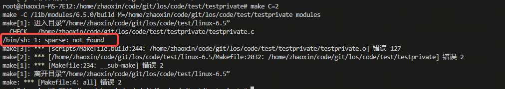 使用下面的命令可以重新编译代码,并且使用sparse工具进行静态检查: