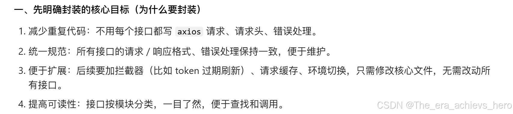 // 3. 响应拦截器:收到后端响应后做的处理(如统一解析数据、处理错误码)