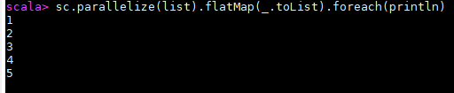 sc.parallelize(list).flatMap(_.toList).foreach(println)