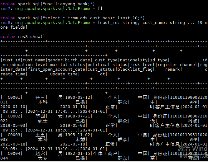 spark.sql("select * from ods_cust_basic limit 10;")
