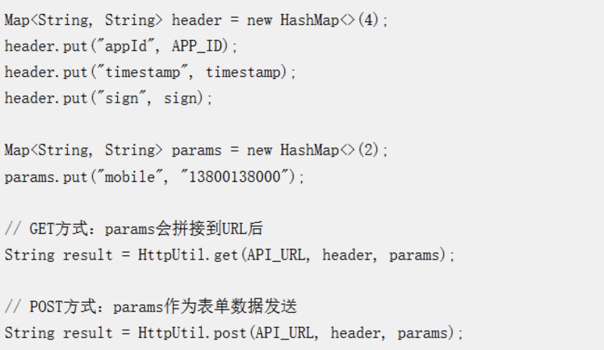 关键点: 根据接口文档要求,appId、timestamp、sign 这三个参数必须放在请求头(header)中。mobile 参数需要放在 query 参数中,即URL的查询字符串部分(GET方式)或表单数据中(POST方式)。在Python中使用requests库时,header参数通过headers参数传递,query参数通过params参数传递(GET)或data参数传递(POST)。