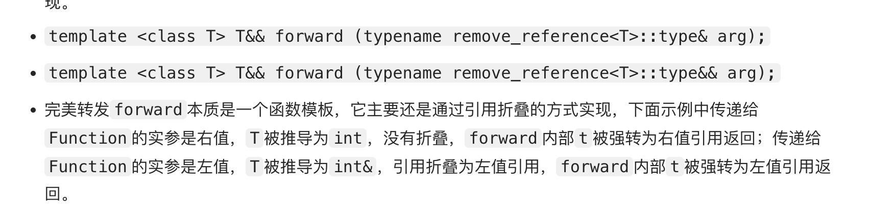 // Fun(forward<T>(t)); // 保留原始实参的左/右值属性
