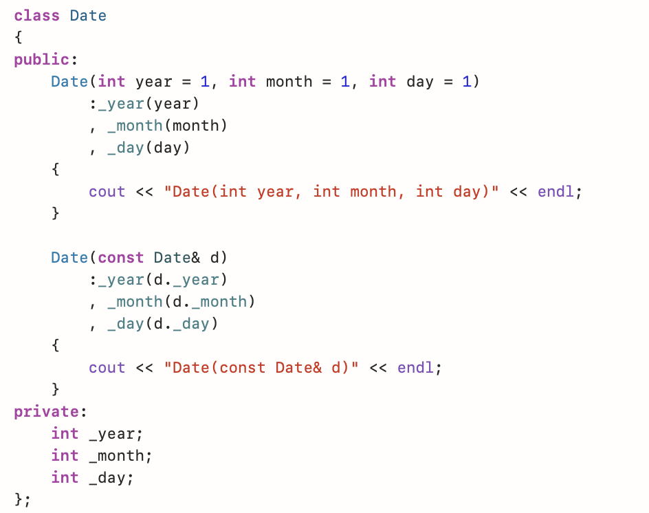// 临时对象再去拷⻉构造d1,编译器优化后合⼆为⼀变成{ 2025, 1, 1}直接构造初始化