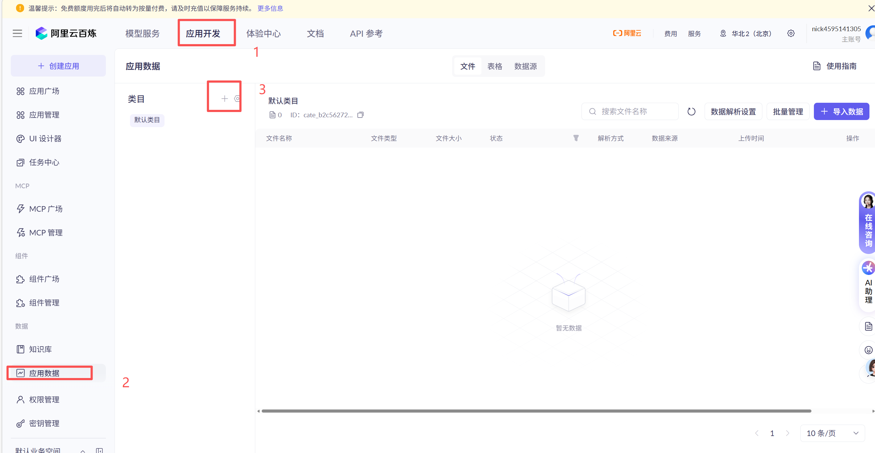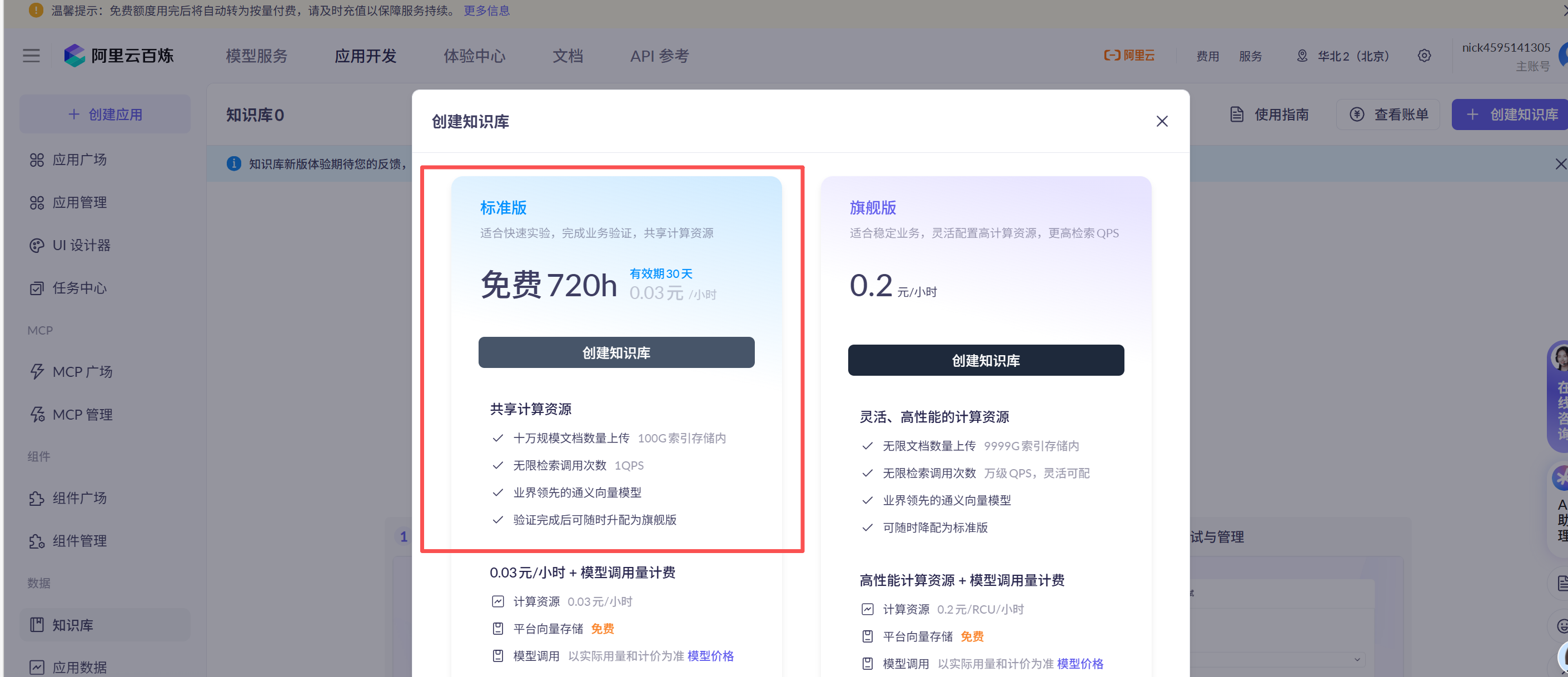 点击阿里云百炼平台的知识库菜单,创建一个知识库: