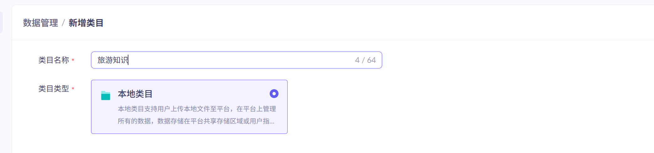 首先推荐大家新建一个"旅游知识"类目,不要把所有的文档放入默认类目,方便管理。点击【类目管理】旁边的+号,新增类目: