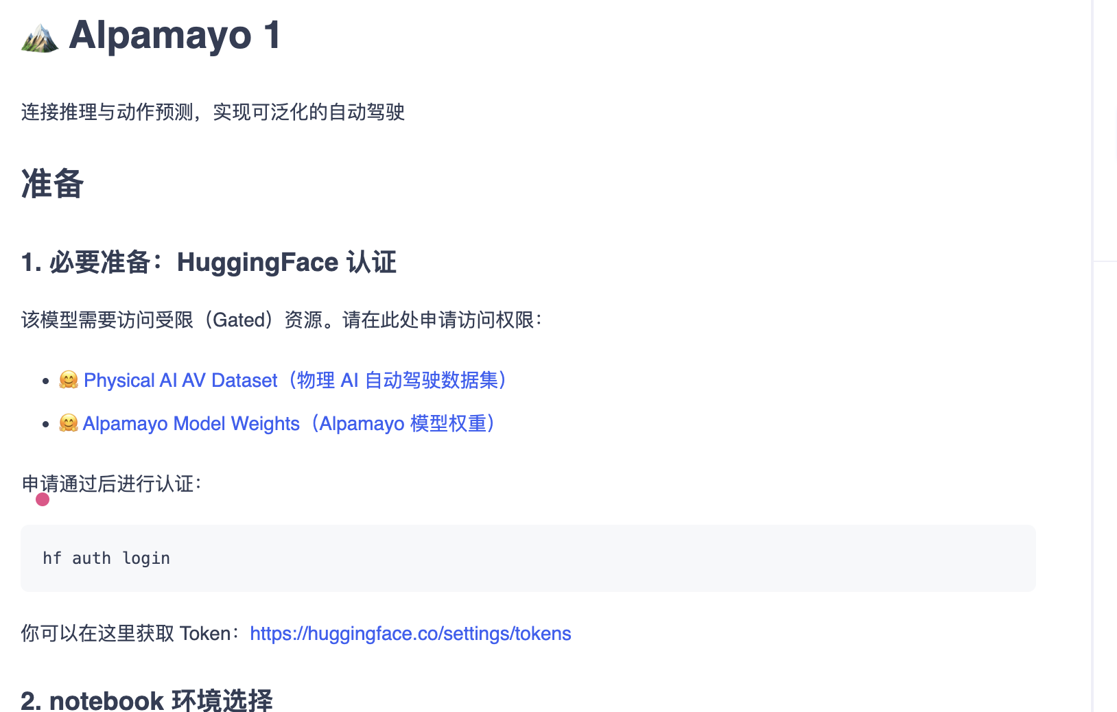 Alpamayo模型权重托管在HuggingFace平台上,属于受限访问资源(gated resources)。在下载模型之前,你需要完成以下步骤来获取访问权限: