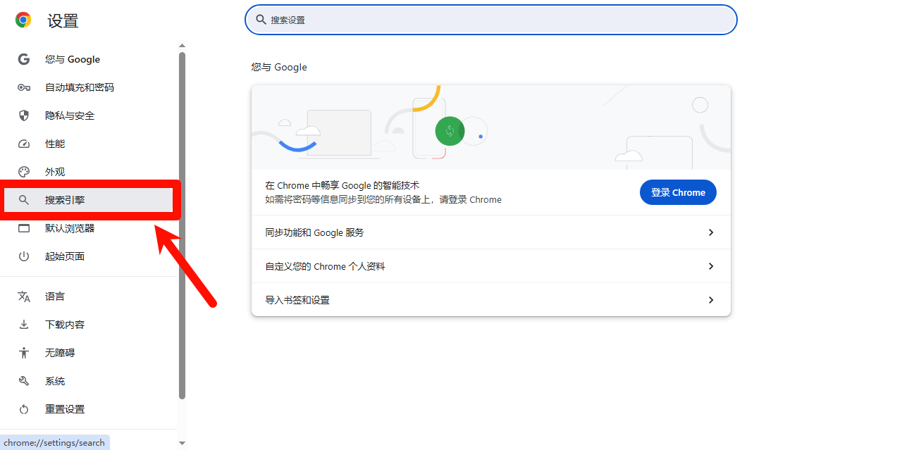 2.点击"搜索引擎"