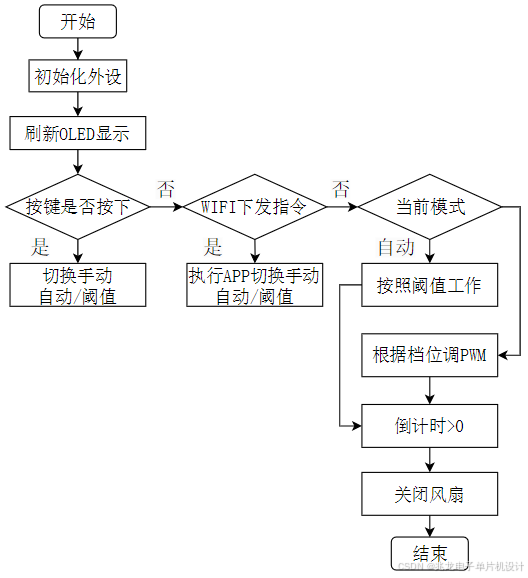 (4) 自动模式下,当检测到有人且环境温度超过设定阈值时,风扇自动启动;