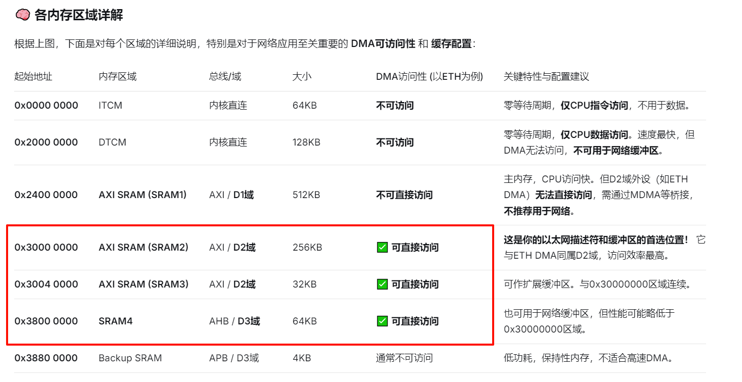 ETH DMA可访问的内存地址如下图