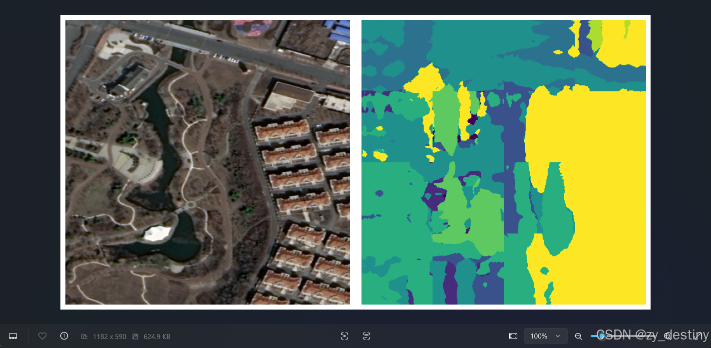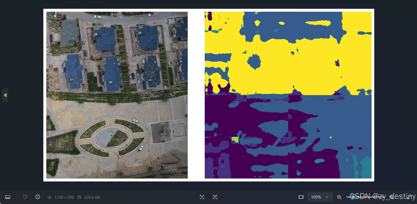 这个是分辨率较高的无人机影像结果,因为看论文中的影像分辨率较高,所以拿了一张无人机影像进行测试,效果没有想象的那么好,不知道是不是分辨率太高的原因。后面还做了一组卫星影像的测试。