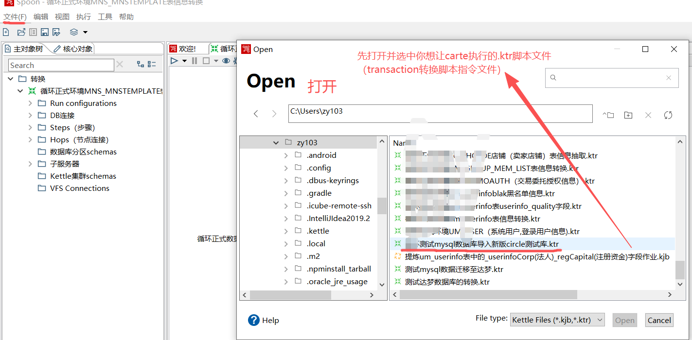 第一步打开 spoon,打开文件选中你的.ktr或者.kjb
