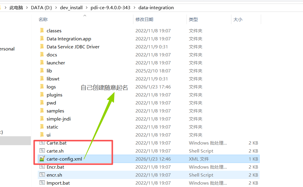 这个可以根据需要自己在 linux对应的carte.sh或是windows系统对应的carte.bat 旁边自己创建一个