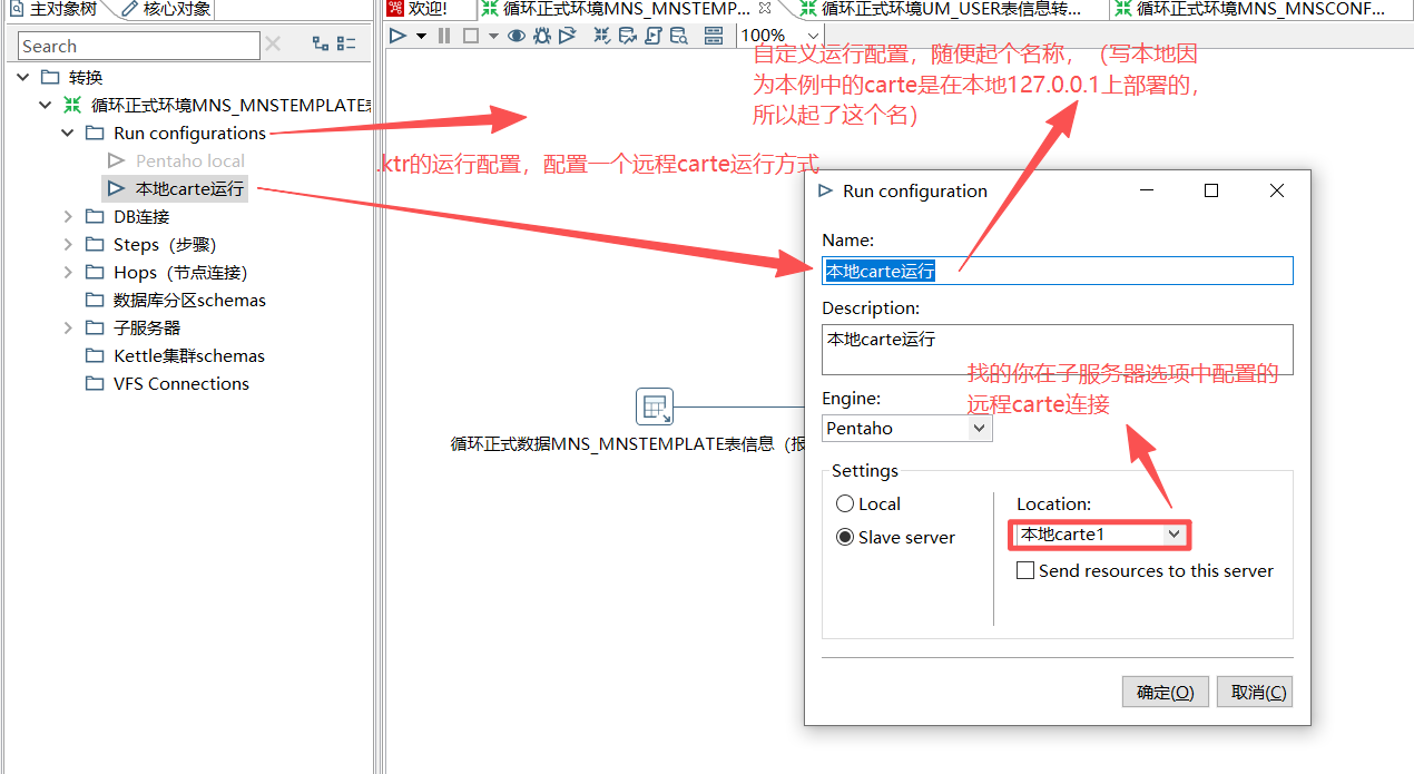 第二种 委托远程carte服务运行,这里我们配置的是第二种,委托远程carte服务运行