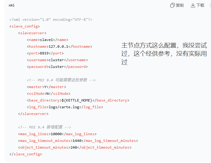下面是集群方式下master节点的配置,我没试过仅供参考,看一下吧