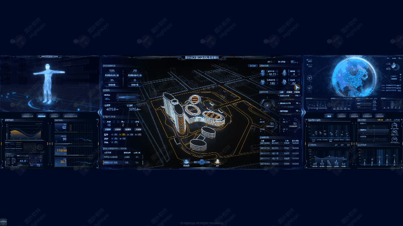 - **2D 与 3D 无缝融合:**通过 HT 的组件化设计,实现 2D 数据面板与 3D 场景的深度融合,支持图形组件的嵌套、旋转、缩放等操作,提升了数据展示的直观性与交互性。